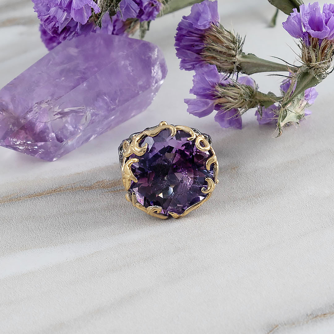 Аметист - это наиболее дорогая разновидность кварца. Магический фиолетовый цвет этого камня во все времена обладал действительно завораживающим эффектом. Своим невероятным цветом он обязан железу, именно этот элемент и придает прозрачному камню его волшебные темно-лавандовые и фиалковые оттенки. Цвет может варьироваться в зависимости от месторождения. Например, цейлонские аметисты имеют нежно - фиолетовый оттенок, а бразильские - более кровавый и насыщенно-пурпурный. Название минерала связано с легендой о прекрасной нимфе Аметис, которую Артемида превратила в драгоценный камень, чтобы защитить от посягательств бога виноделия Диониса.