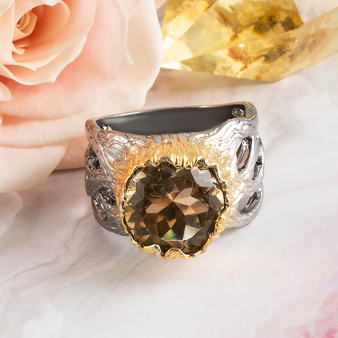 Кольцо из серебра с цитрином, хризолитом, топазом, гранатом, аметистом, фианитом