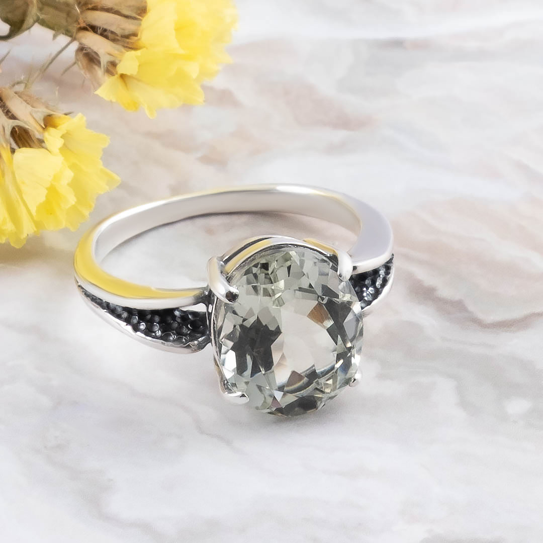 Празиолит - кварц нежного мятного оттенка, выглядит очень привлекательно и благородно. Красота празиолита - в его прозрачности и чистоте, в мягкости зеленого цвета. Этот камень называют также “зеленым аметистом“, ведь часто аметисты обрабатывают путем нагрева до 500 градусов, что заставляет их менять свой фиалковый оттенок на мятный. Чаще всего огранщики придают ему четкие формы, чтобы наиболее раскрыть сияние и блеск минерала.