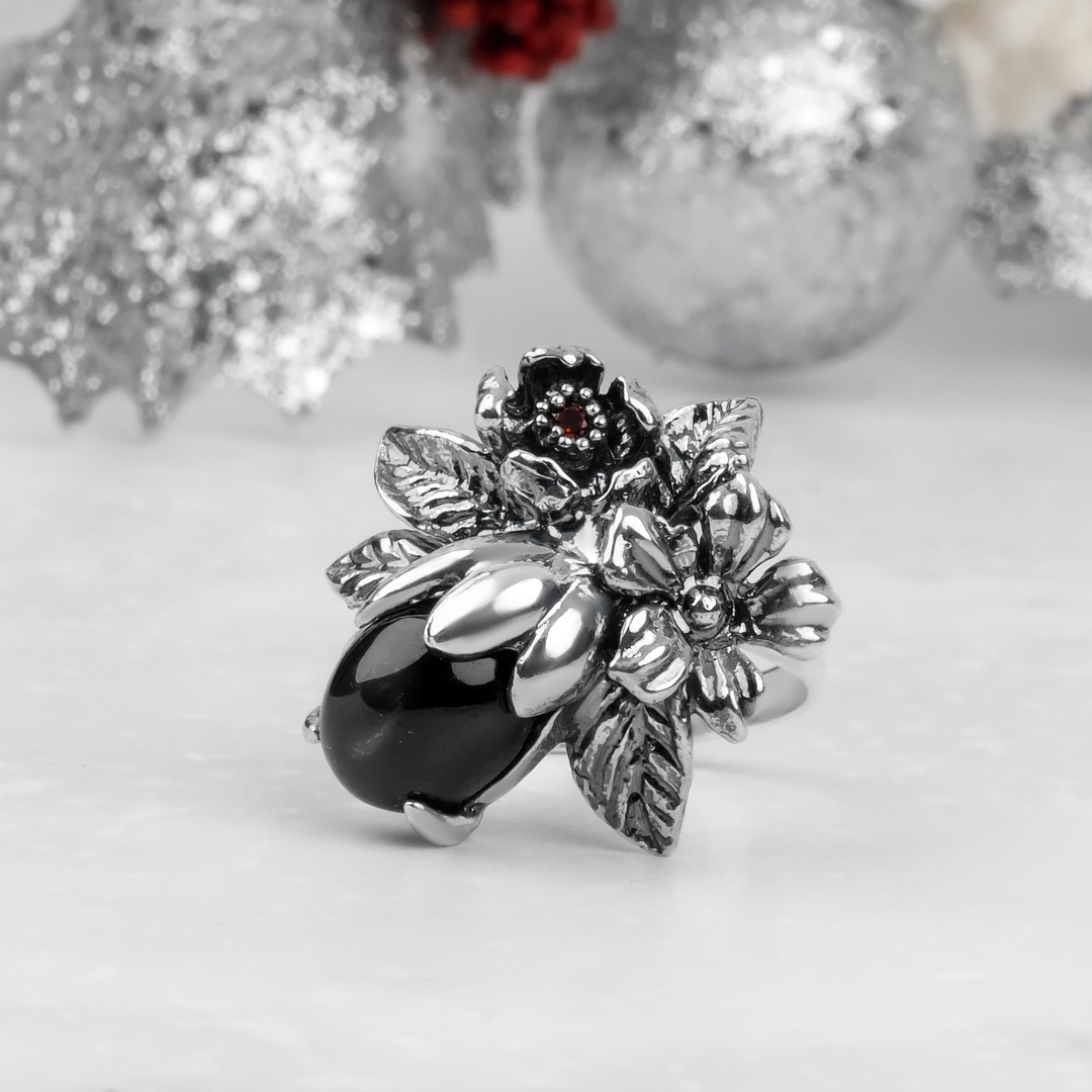 Кольцо из серебра с диопсидом