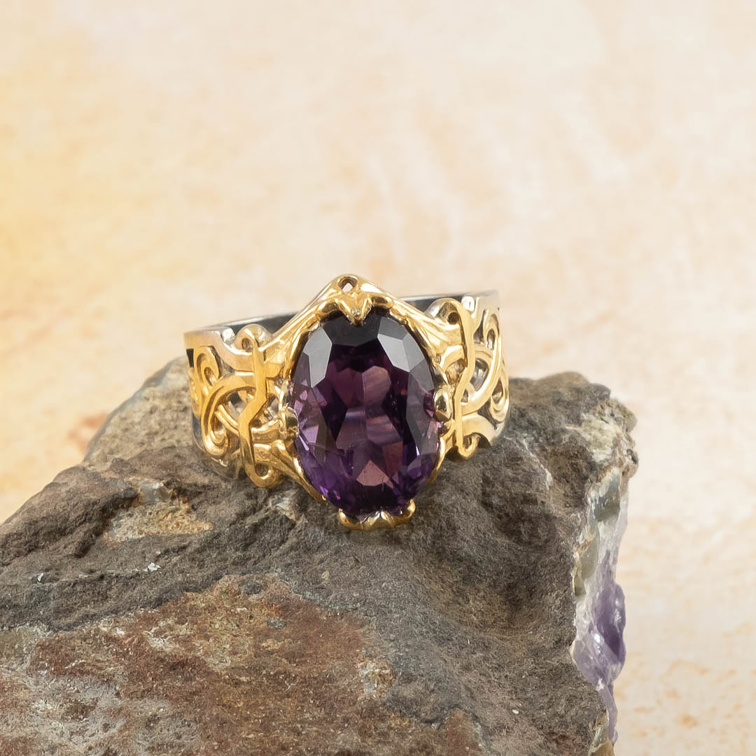 Кольцо из серебра с сапфиром, аметистом, хромдиопсидом