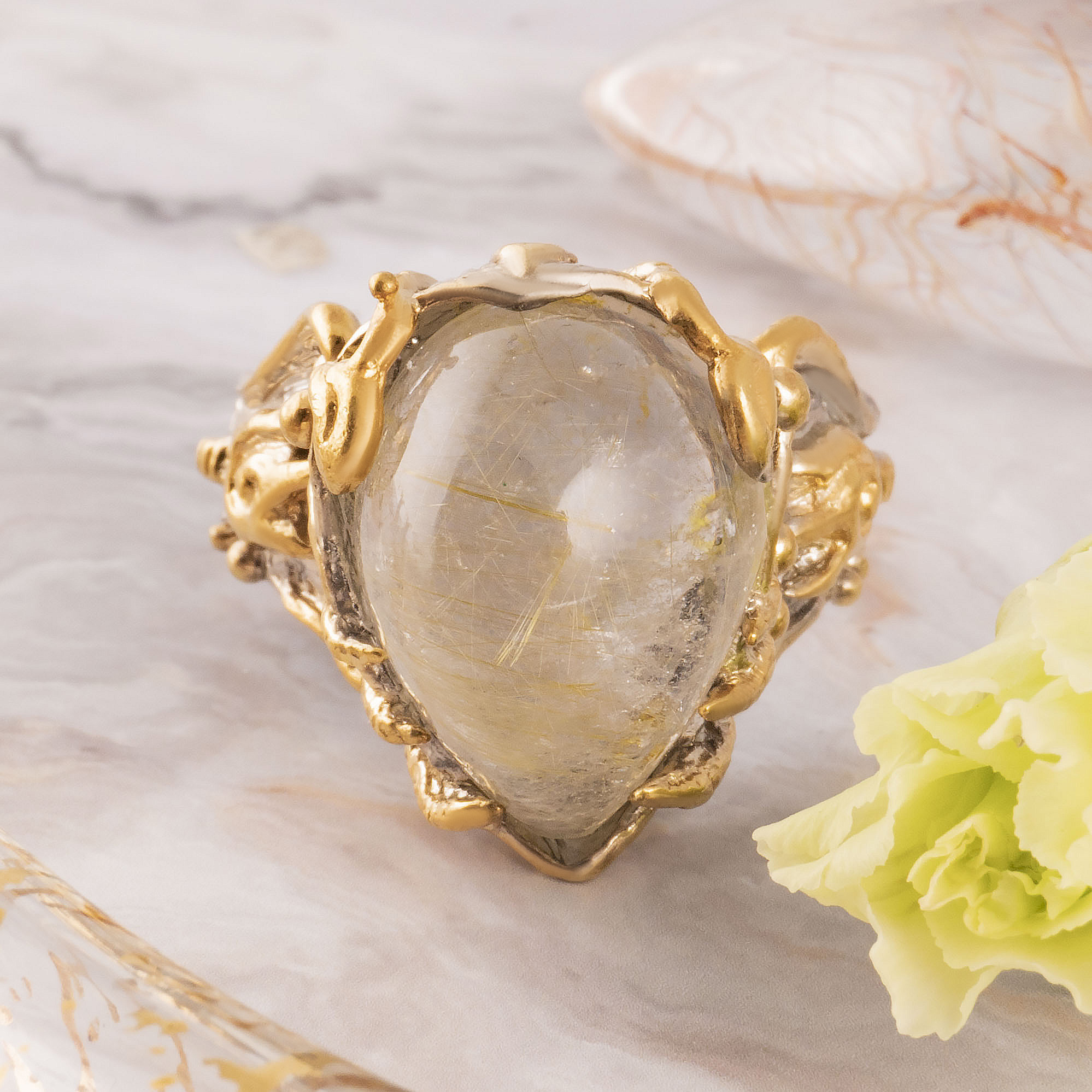 Кольцо из серебра с рутиловым кварцем (волосатик)