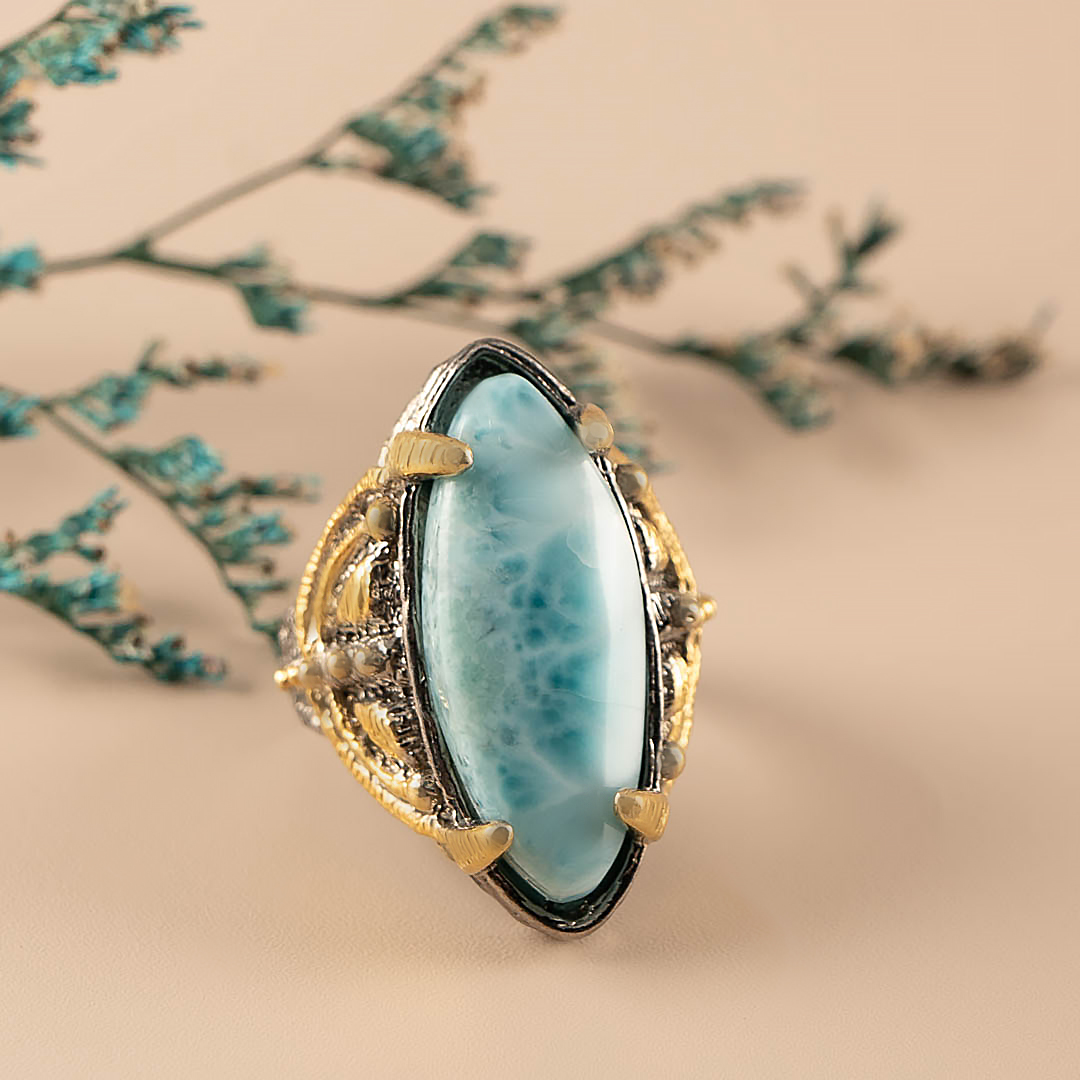 Кольцо из серебра с ларимаром