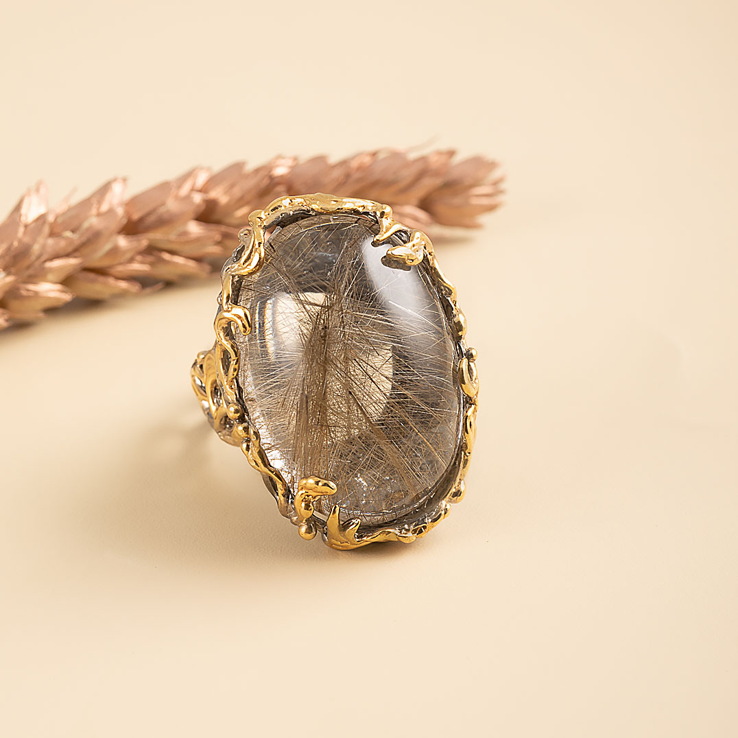 Кольцо из серебра с рутиловым кварцем (волосатик)