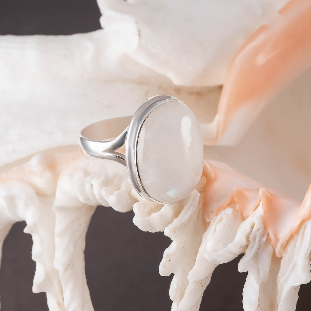 Лунный камень, как и следует из названия, напрямую связан и ассоциируется с Луной. Считается, что камень притягивает лунную энергию, успокаивает, охлаждает темперамент. Он может нейтрализовать вспышки гнева, разбудить мечтательность и нежность. Если Вы испытываете беспокойство и бессонницу в полнолуние, то этот минерал сможет Вам помочь! Лунный камень - талисман влюбленных. Он привлекает чувства в жизнь хозяина и помогает нормализовать отношения с любимым человеком. Важно учитывать, что лунный камень следует оправлять только в серебро - этот холодный металл лучше всего раскрывает способности минерала. В полнолуние оставьте Ваше украшение на подоконнике: камень “впитает“ в себя энергию Луны и станет еще сильнее.