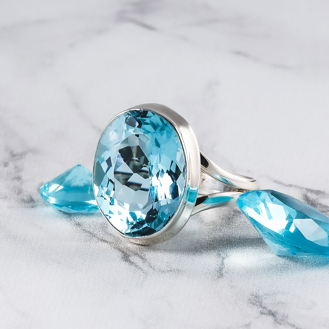 Топаз - один из самых популярных драгоценных камней в ювелирном искусстве. По твердости он уступает только алмазу и корунду. Прозрачность и бриллиантовый блеск граней делают его удивительно привлекательным для коллекционеров. Название камень получил в честь острова Топазос в Красном море. Люди знали этот камень еще в древние времена. Так, Библия гласит, что топаз составлял часть украшения первосвященника Аарона. Королевские дворы Европы также выбирали этот камень для ювелирных коллекций. Известен, например, камень “Браганза“, входящий в число регалий португальской короны. Цветовая гамма этого драгоценного камня разнообразна: существуют розовые, желтые, голубые, фиолетовые, винные топазы. Голубые топазы принято разделять на три категории в зависимости от интенсивности окраски (обычно достигаемой за счет облучения): Sky Blue - небесно-голубые, Swiss Blue - швейцарские, с более насыщенным цветом, и London Blue - лондонские, с наиболее глубоким оттенком синевы.