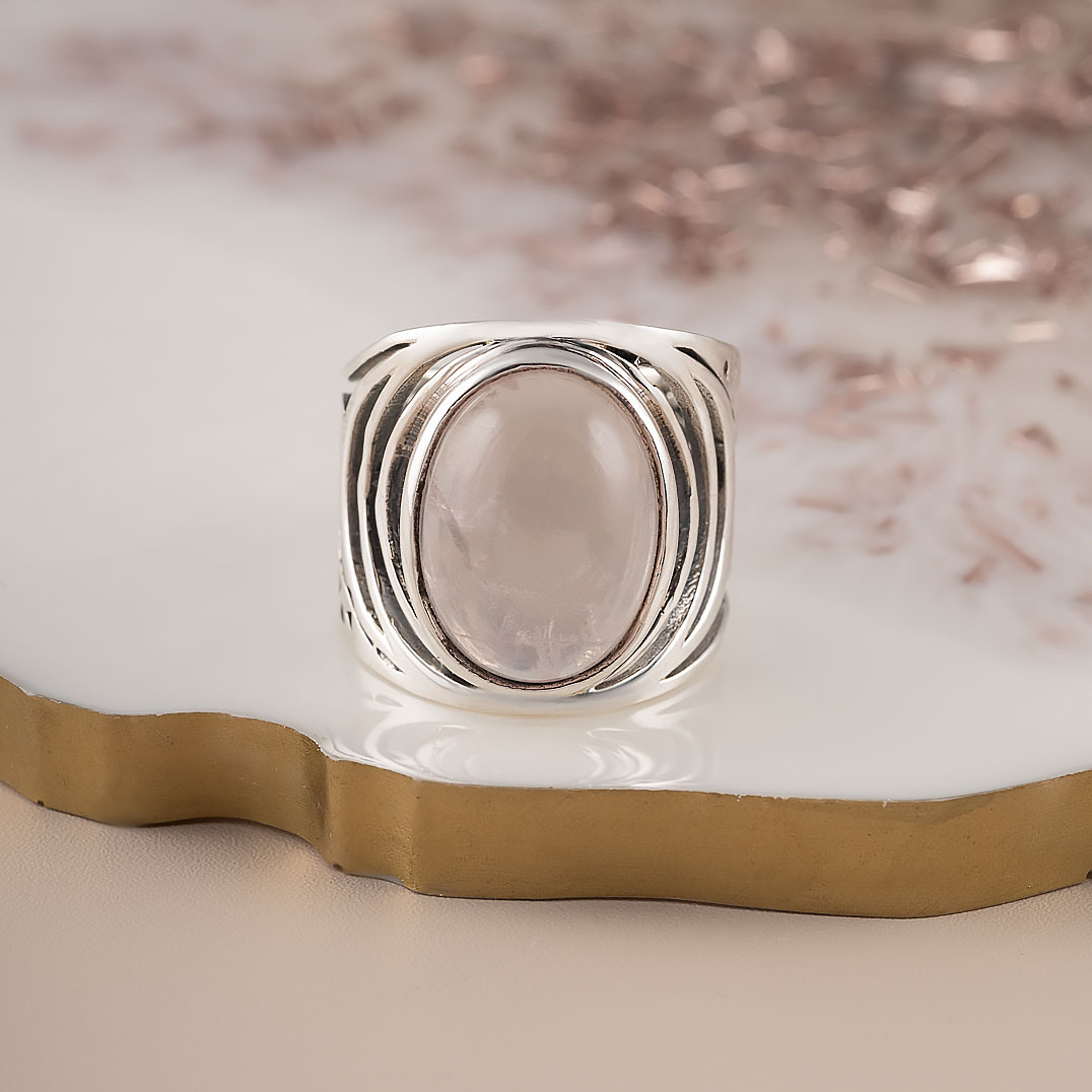 Кольцо из серебра с розовым кварцем, хромдиопсидом