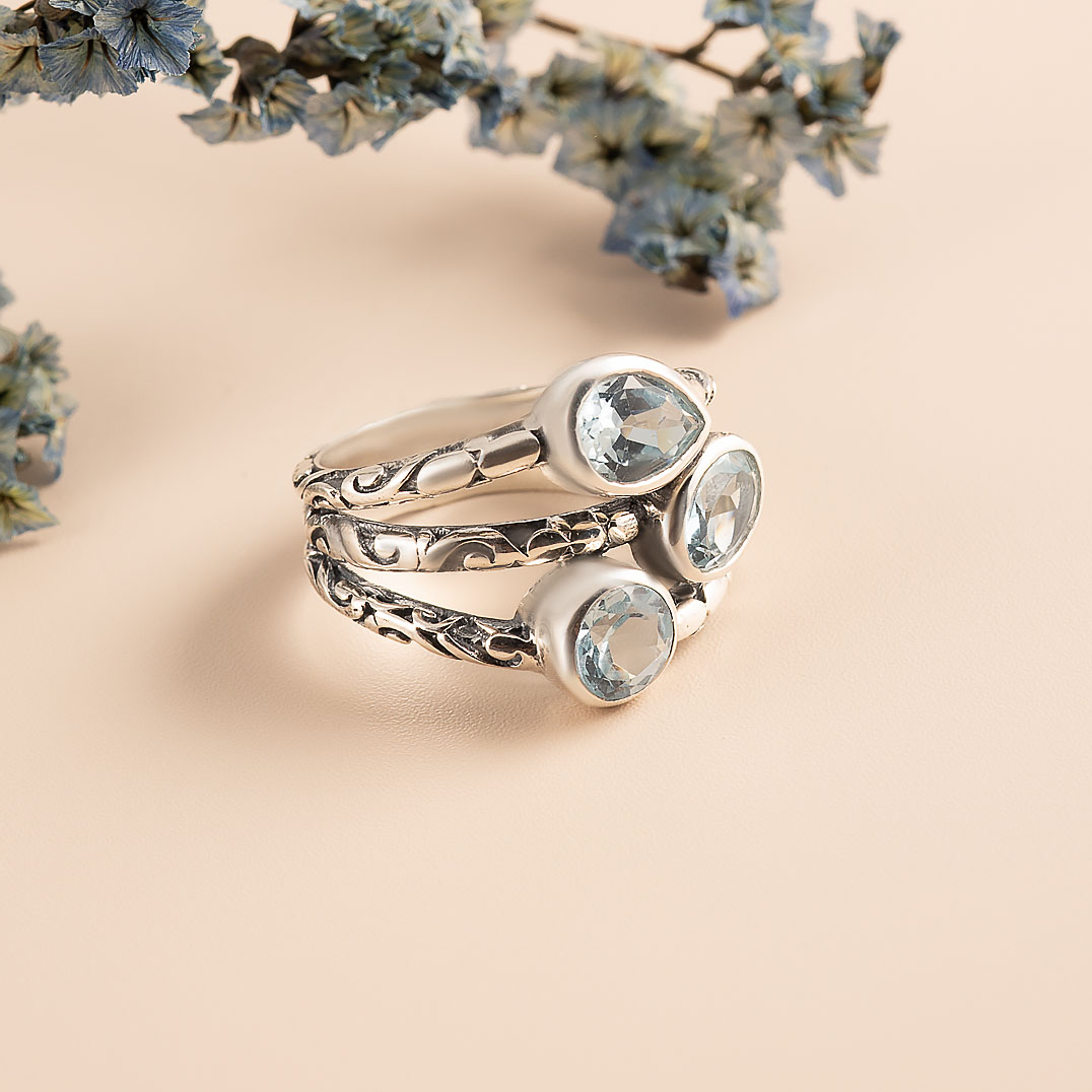 Топаз - один из самых популярных драгоценных камней в ювелирном искусстве. По твердости он уступает только алмазу и корунду. Прозрачность и бриллиантовый блеск граней делают его удивительно привлекательным для коллекционеров. Название камень получил в честь острова Топазос в Красном море. Люди знали этот камень еще в древние времена. Так, Библия гласит, что топаз составлял часть украшения первосвященника Аарона. Королевские дворы Европы также выбирали этот камень для ювелирных коллекций. Известен, например, камень “Браганза“, входящий в число регалий португальской короны. Цветовая гамма этого драгоценного камня разнообразна: существуют розовые, желтые, голубые, фиолетовые, винные топазы. Голубые топазы принято разделять на три категории в зависимости от интенсивности окраски (обычно достигаемой за счет облучения): Sky Blue - небесно-голубые, Swiss Blue - швейцарские, с более насыщенным цветом, и London Blue - лондонские, с наиболее глубоким оттенком синевы.