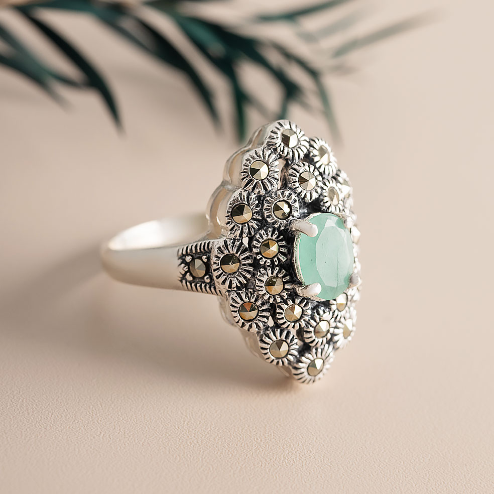 Кольцо из серебра с изумрудом, марказитом