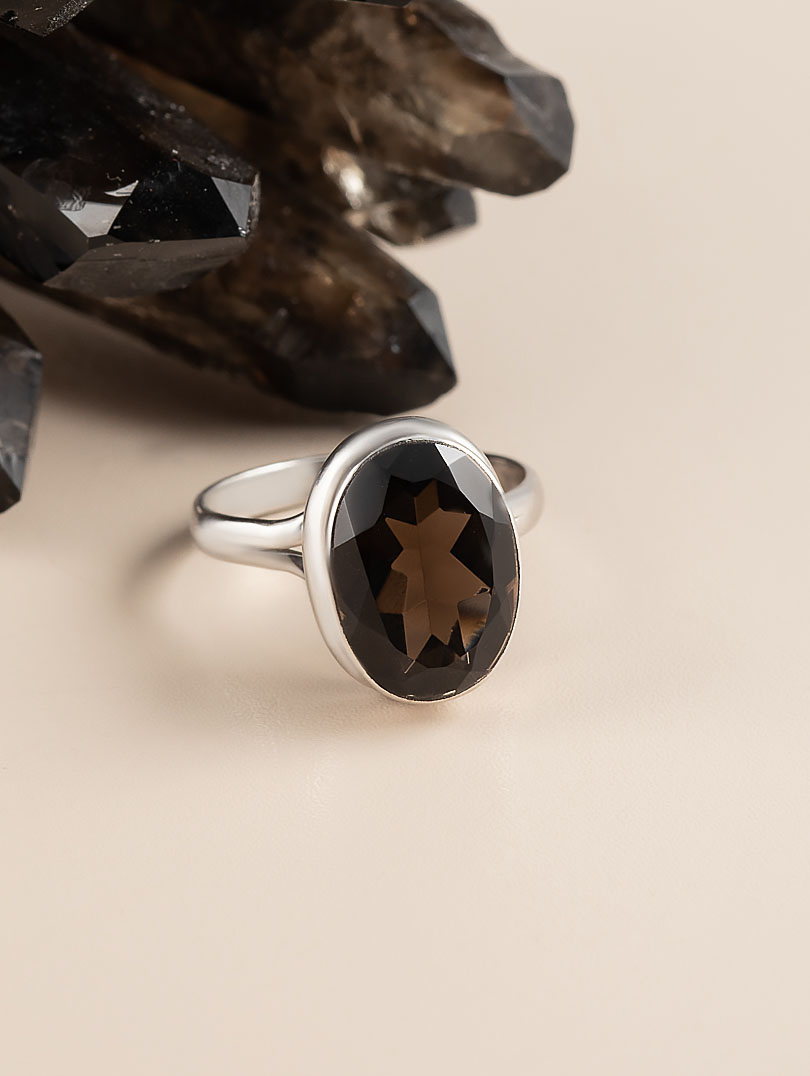 Кольцо из серебра с раухтопазом (дымчатый кварц)