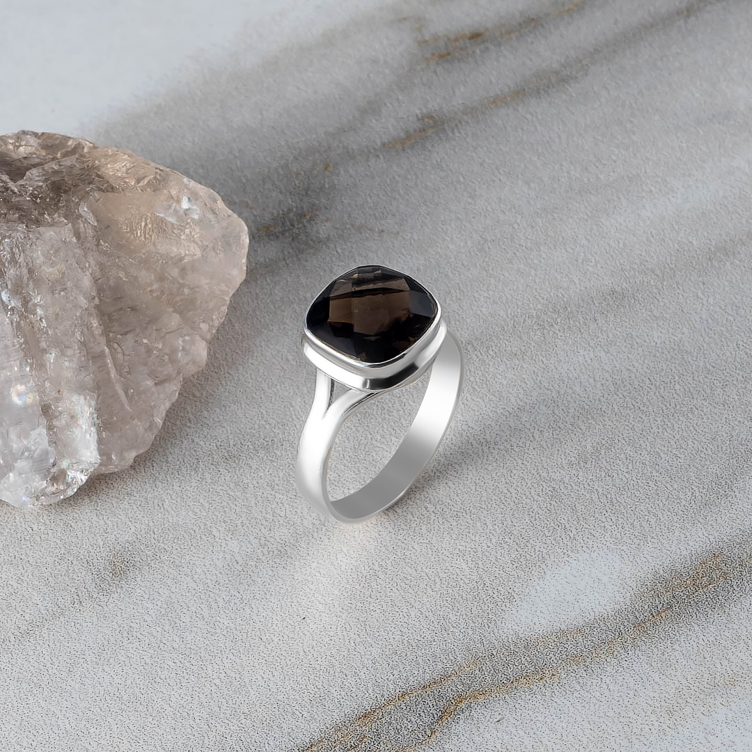Кольцо из серебра с раухтопазом (дымчатый кварц)