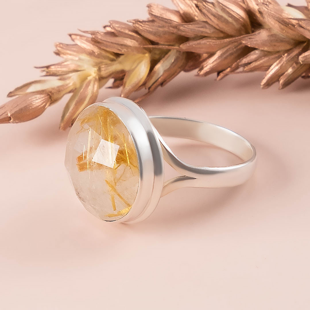 Кольцо из серебра с рутиловым кварцем (волосатик)