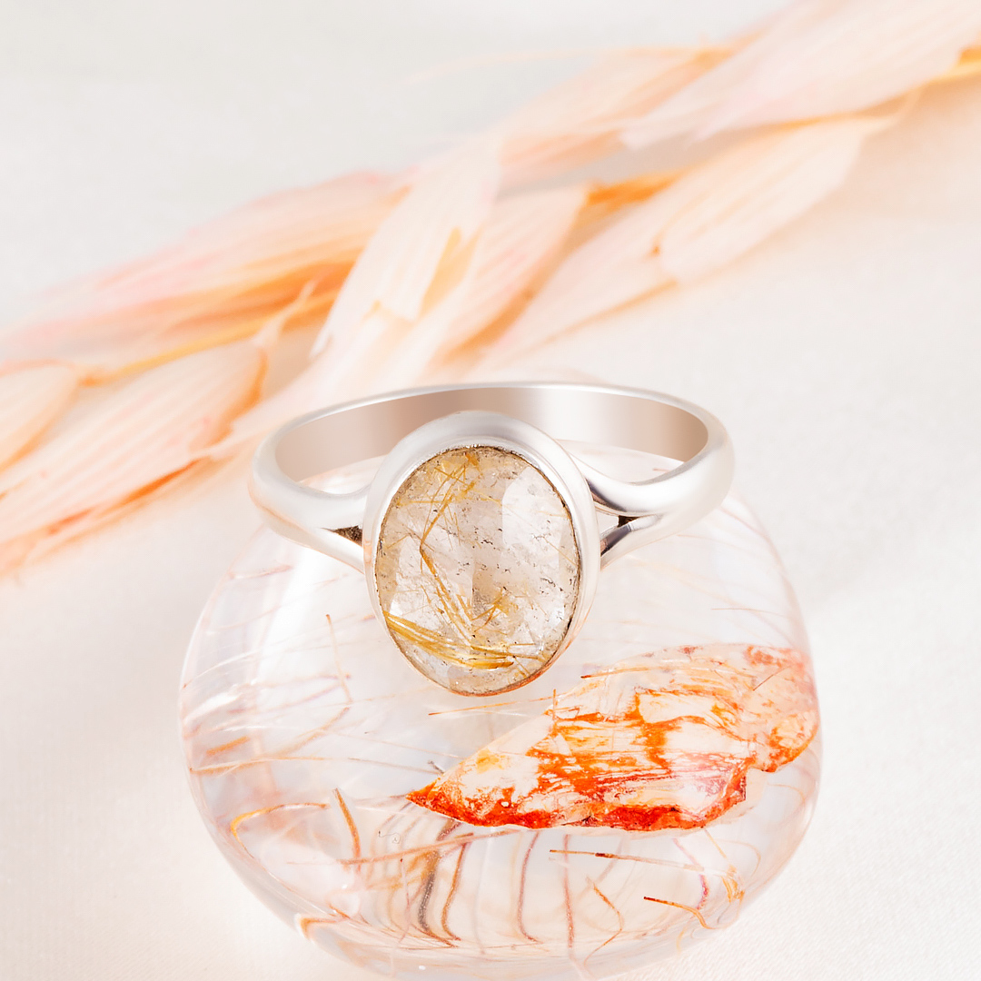 Кольцо из серебра с рутиловым кварцем (волосатик)