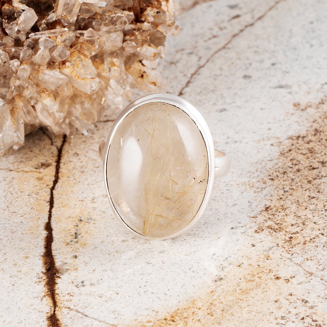Кольцо из серебра с рутиловым кварцем (волосатик)