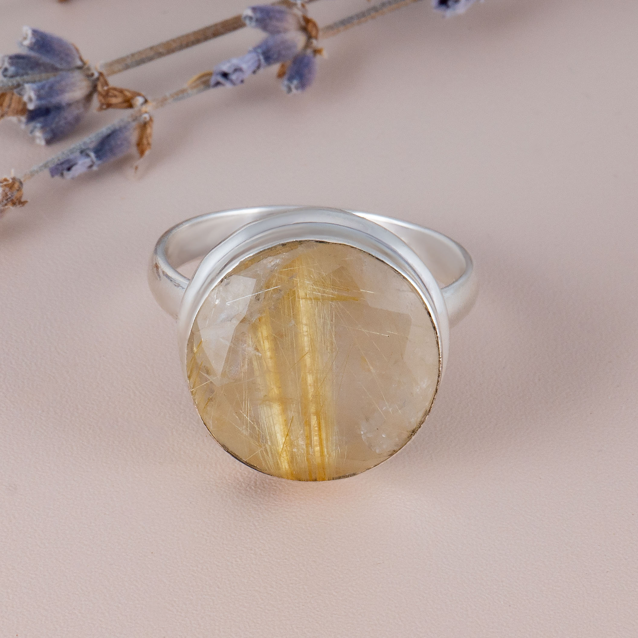Кольцо из серебра с рутиловым кварцем (волосатик)