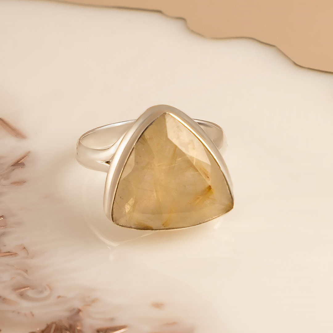 Кольцо из серебра с рутиловым кварцем (волосатик)
