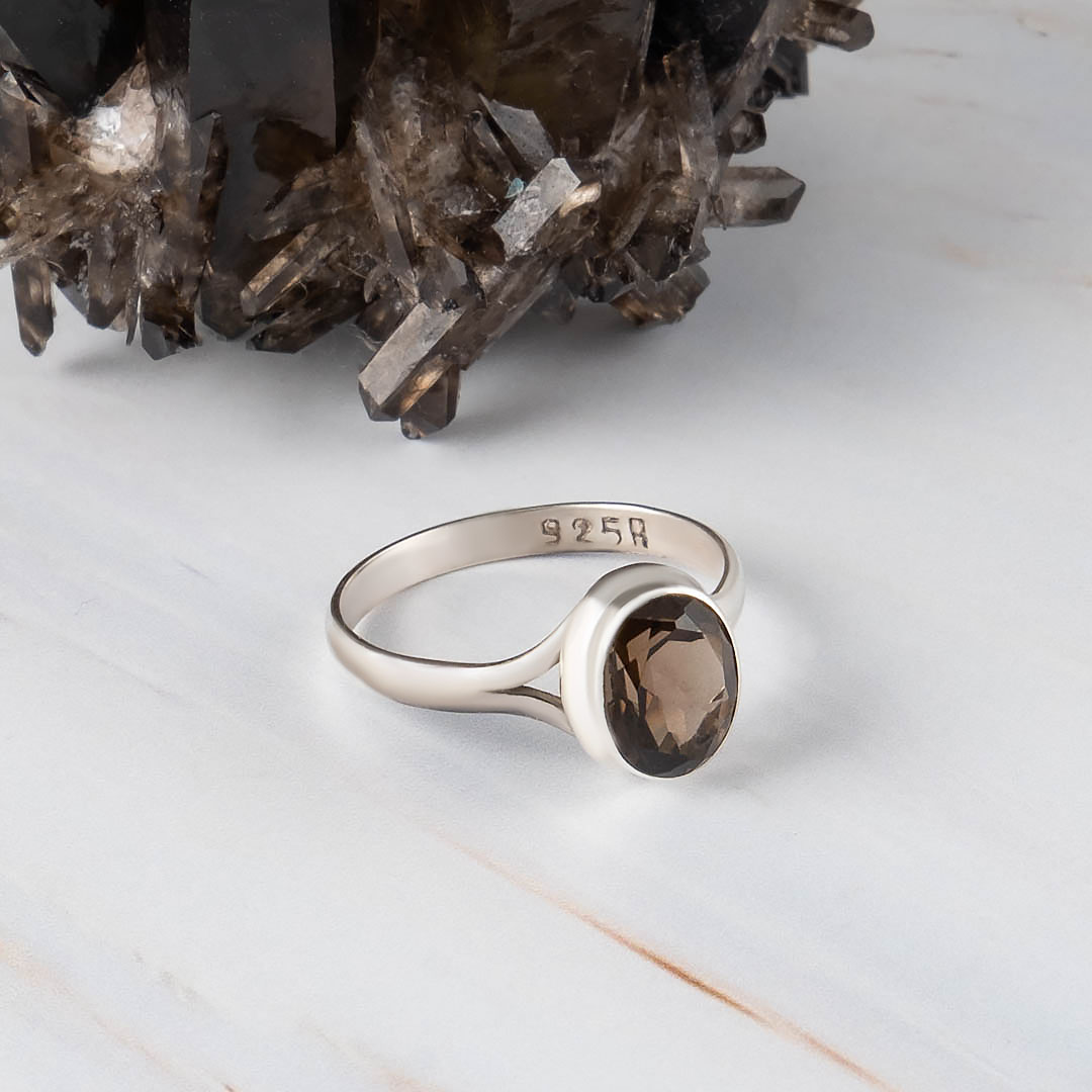 Кольцо из серебра с раухтопазом (дымчатый кварц)