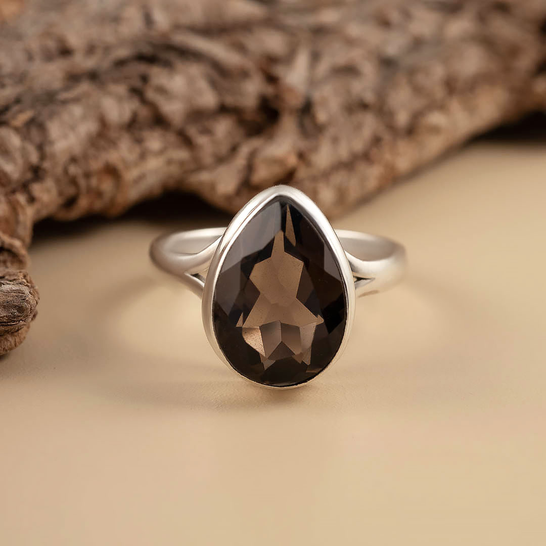 Кольцо из серебра с раухтопазом (дымчатый кварц)