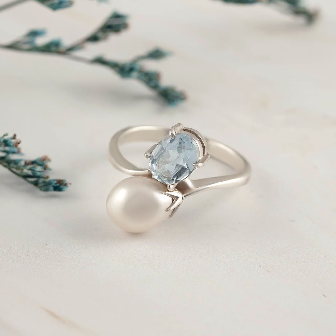 Кольцо из серебра с топазом, жемчугом