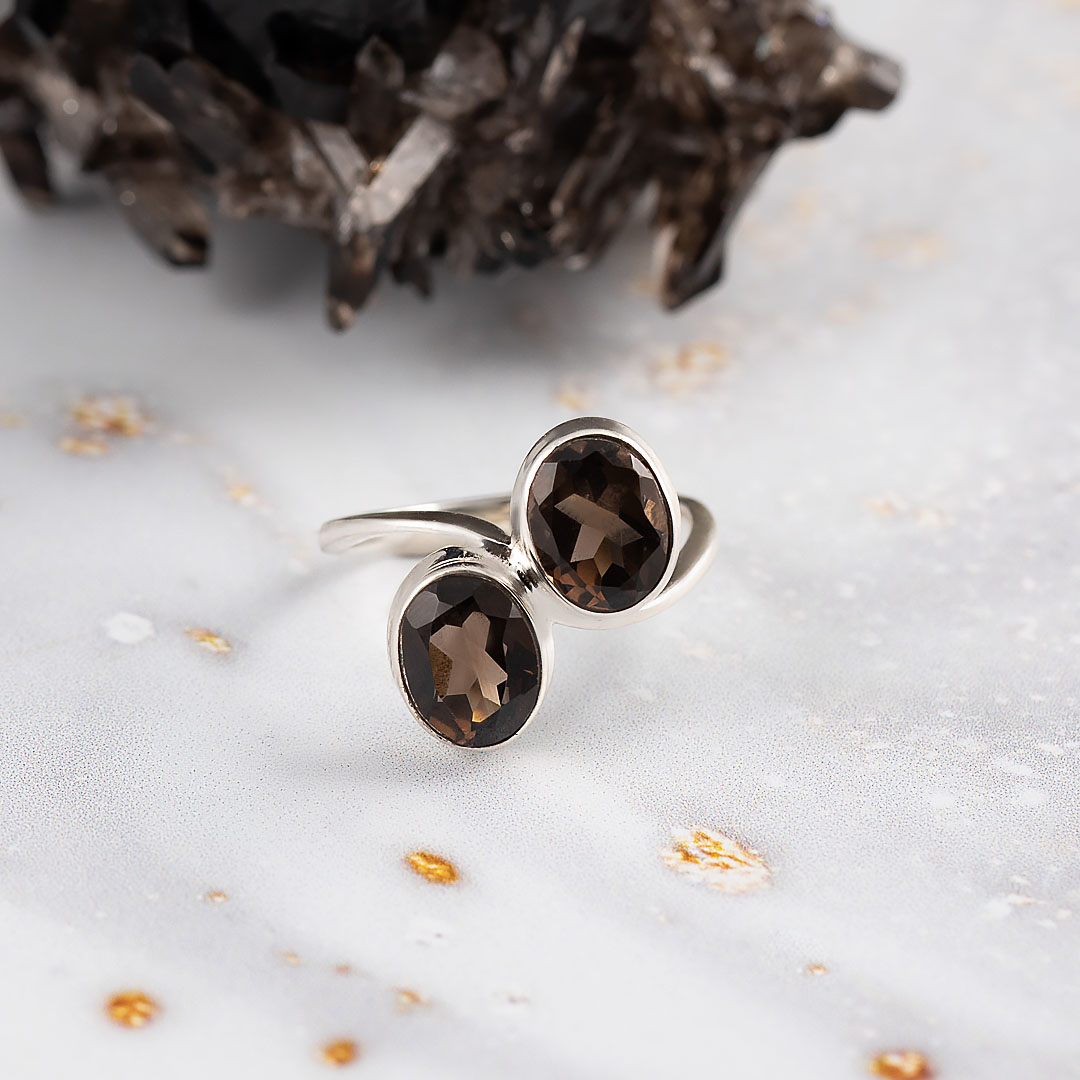 Кольцо из серебра с раухтопазом (дымчатый кварц)