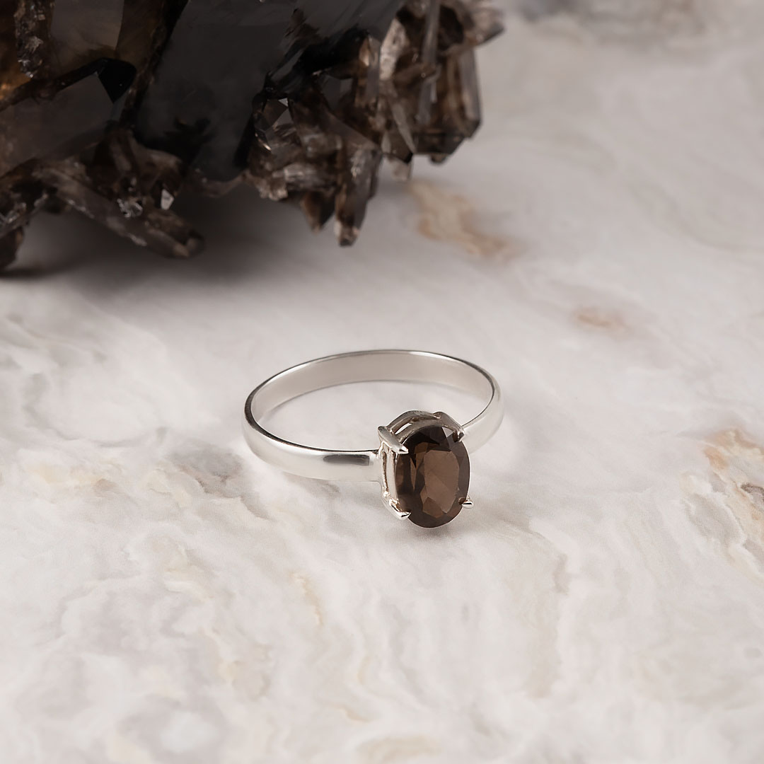Кольцо из серебра с раухтопазом (дымчатый кварц)