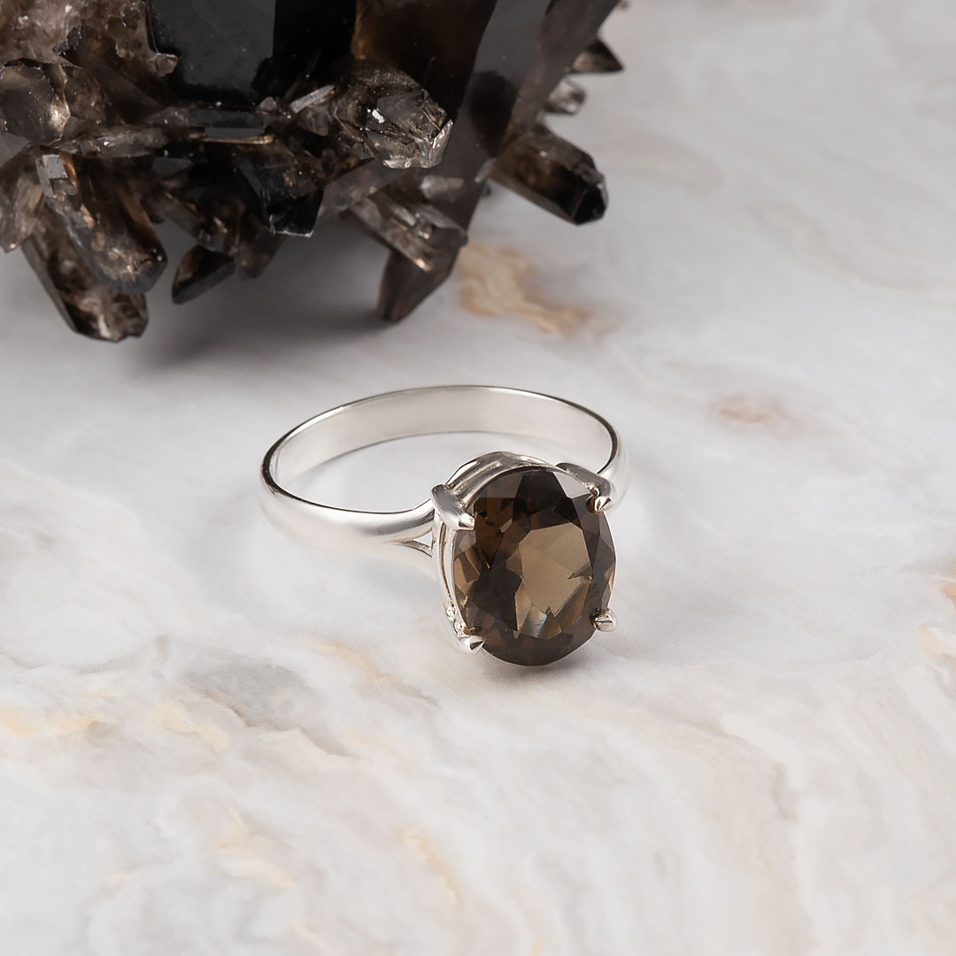 Кольцо из серебра с раухтопазом (дымчатый кварц)