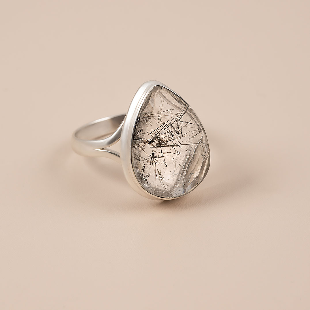 Кольцо из серебра с рутиловым кварцем (волосатик)