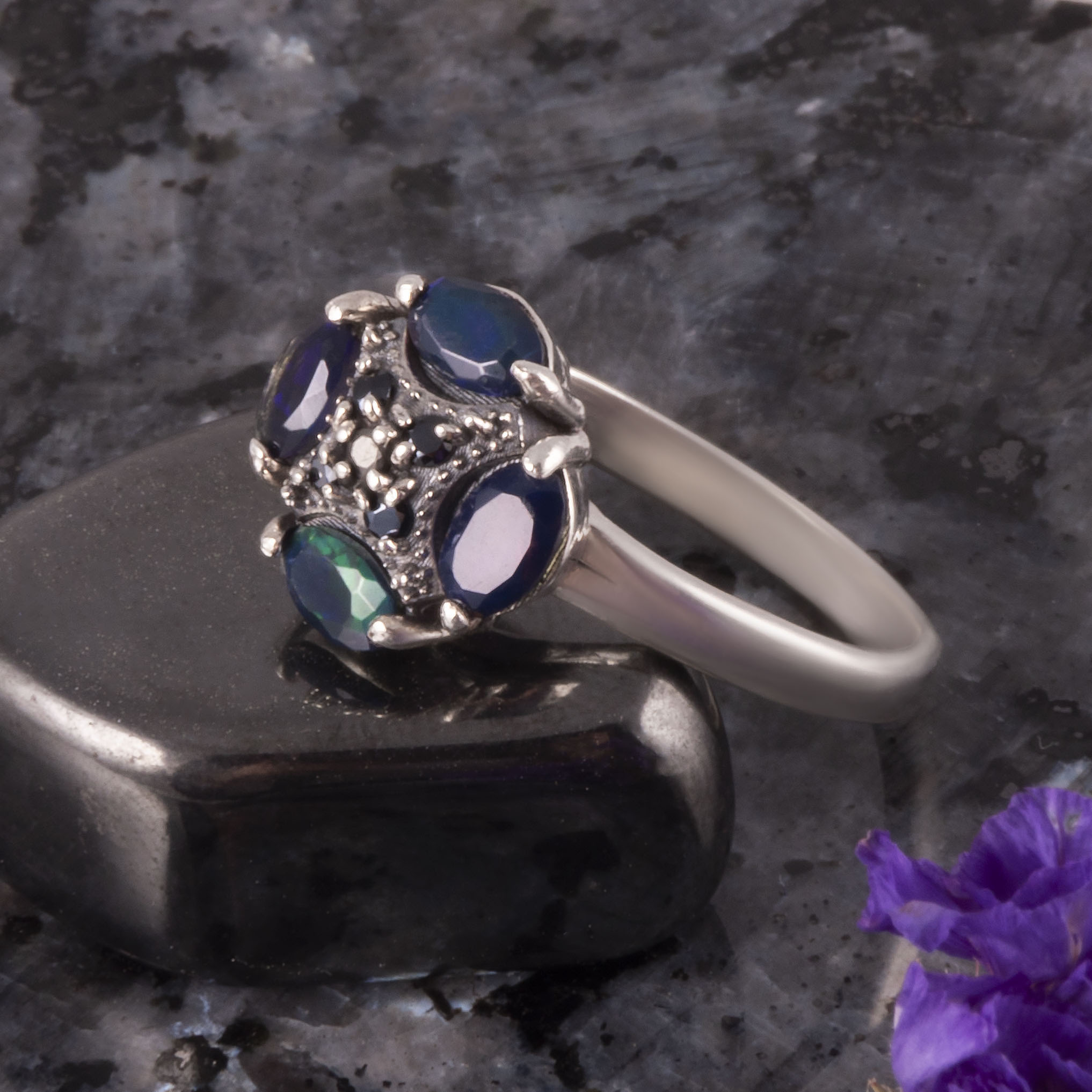 Кольцо из серебра с ониксом, опалом