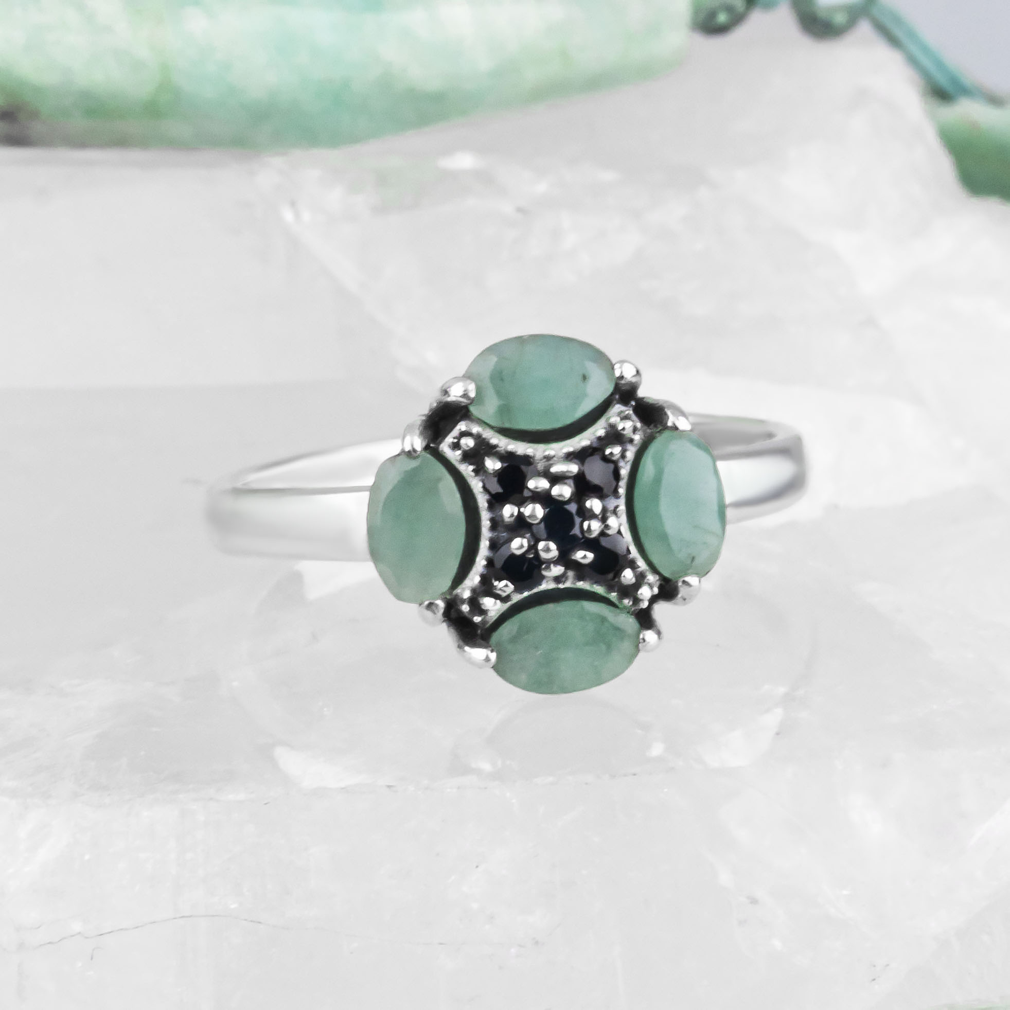 Кольцо из серебра с ониксом, изумрудом