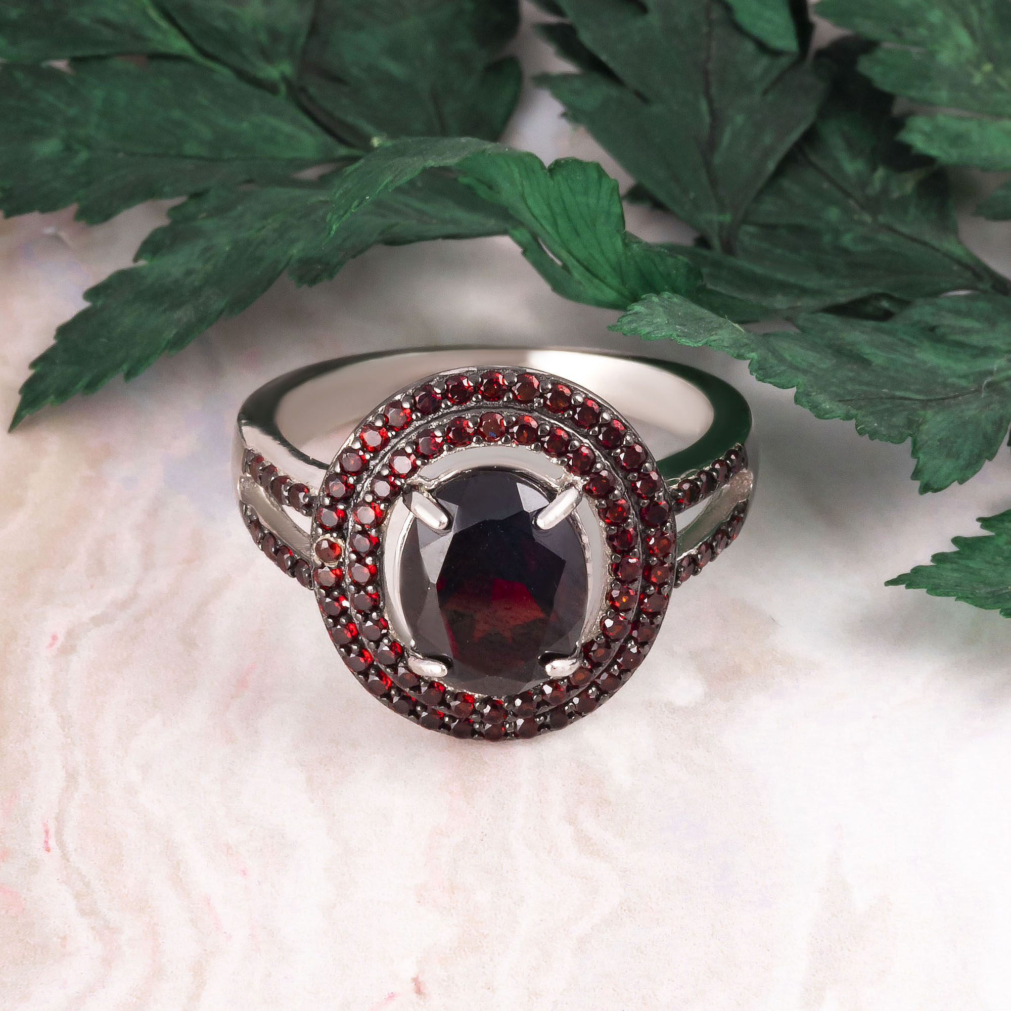 Кольцо из серебра с гранатом
