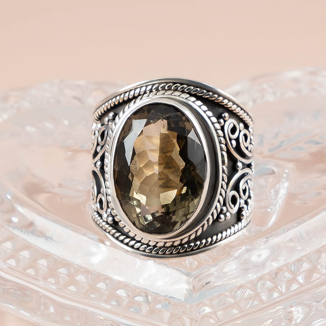 Кольцо из серебра с празиолитом, кварцем, хромдиопсидом