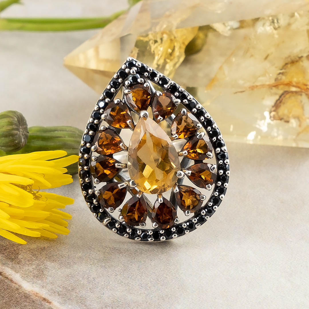 Кольцо из серебра с цитрином, ониксом, турмалином
