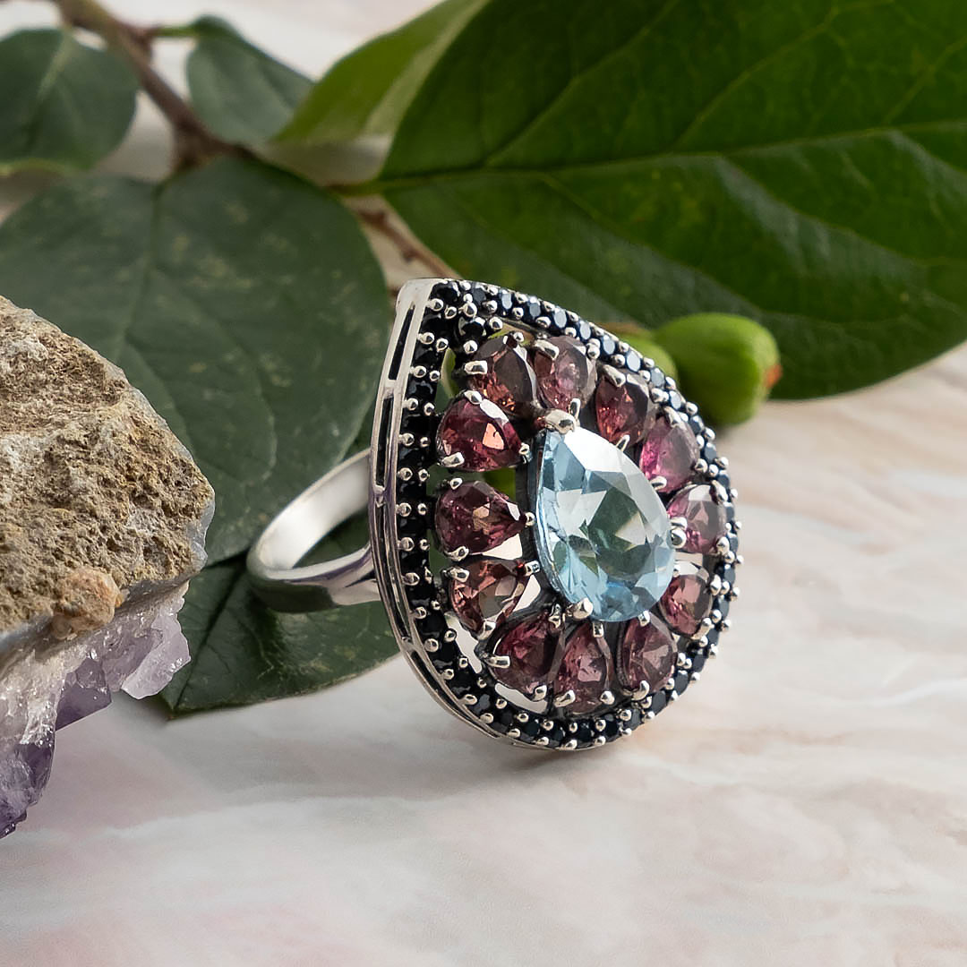 Топаз - один из самых популярных драгоценных камней в ювелирном искусстве. По твердости он уступает только алмазу и корунду. Прозрачность и бриллиантовый блеск граней делают его удивительно привлекательным для коллекционеров. Название камень получил в честь острова Топазос в Красном море. Люди знали этот камень еще в древние времена. Так, Библия гласит, что топаз составлял часть украшения первосвященника Аарона. Королевские дворы Европы также выбирали этот камень для ювелирных коллекций. Известен, например, камень “Браганза“, входящий в число регалий португальской короны. Цветовая гамма этого драгоценного камня разнообразна: существуют розовые, желтые, голубые, фиолетовые, винные топазы. Голубые топазы принято разделять на три категории в зависимости от интенсивности окраски (обычно достигаемой за счет облучения): Sky Blue - небесно-голубые, Swiss Blue - швейцарские, с более насыщенным цветом, и London Blue - лондонские, с наиболее глубоким оттенком синевы.