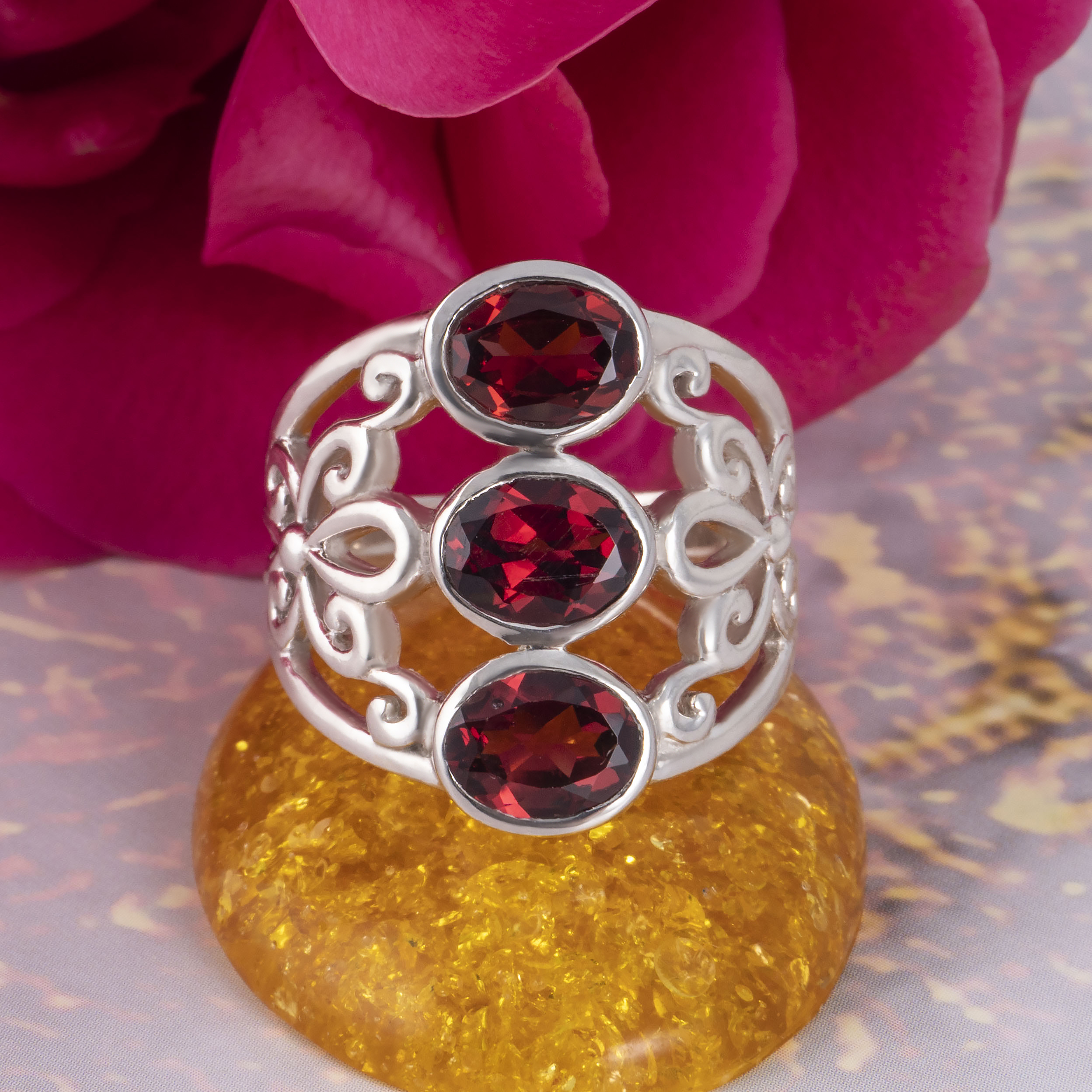 Гранат, как красный камень, символизирует любовь и страсть. Красные гранаты усиливают сексуальность и притягательность. Вместе с тем, этот камень считается символом верности, преданности и силы.