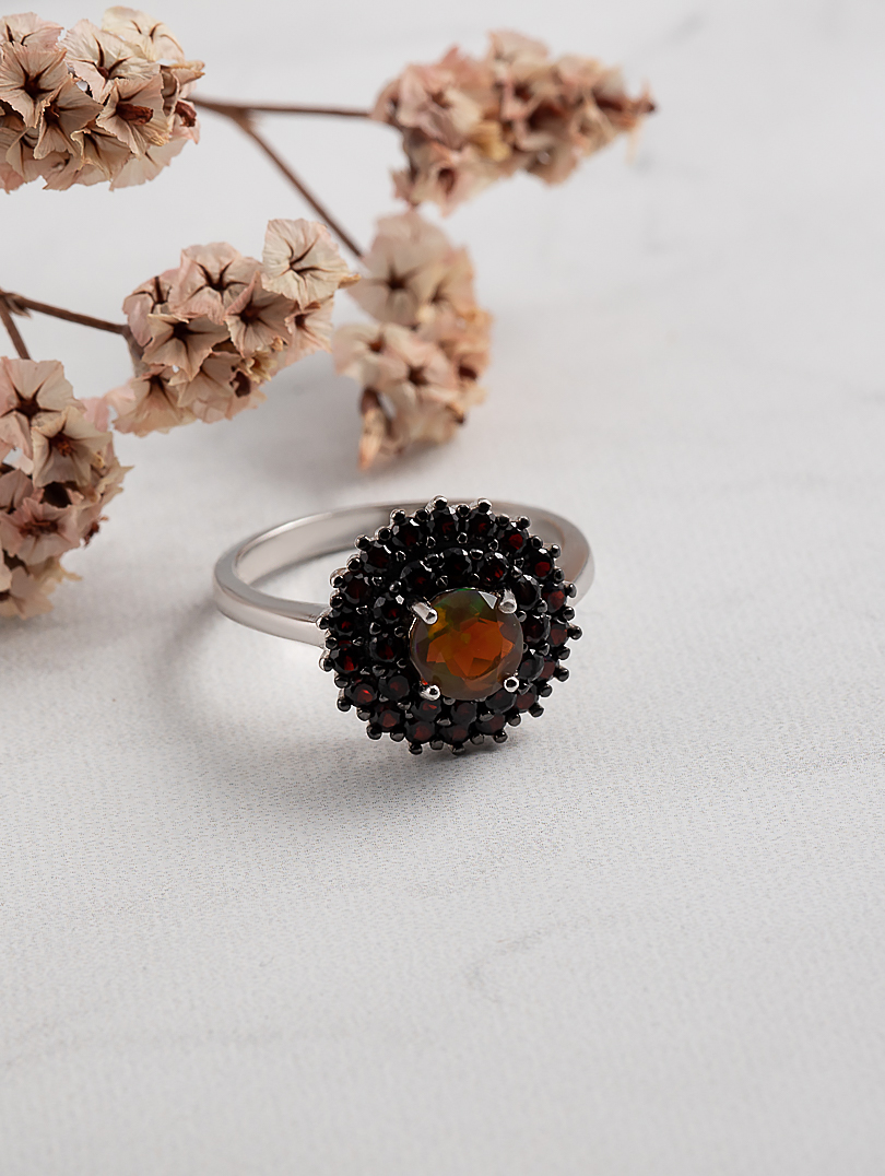 Кольцо из серебра с гранатом, опалом