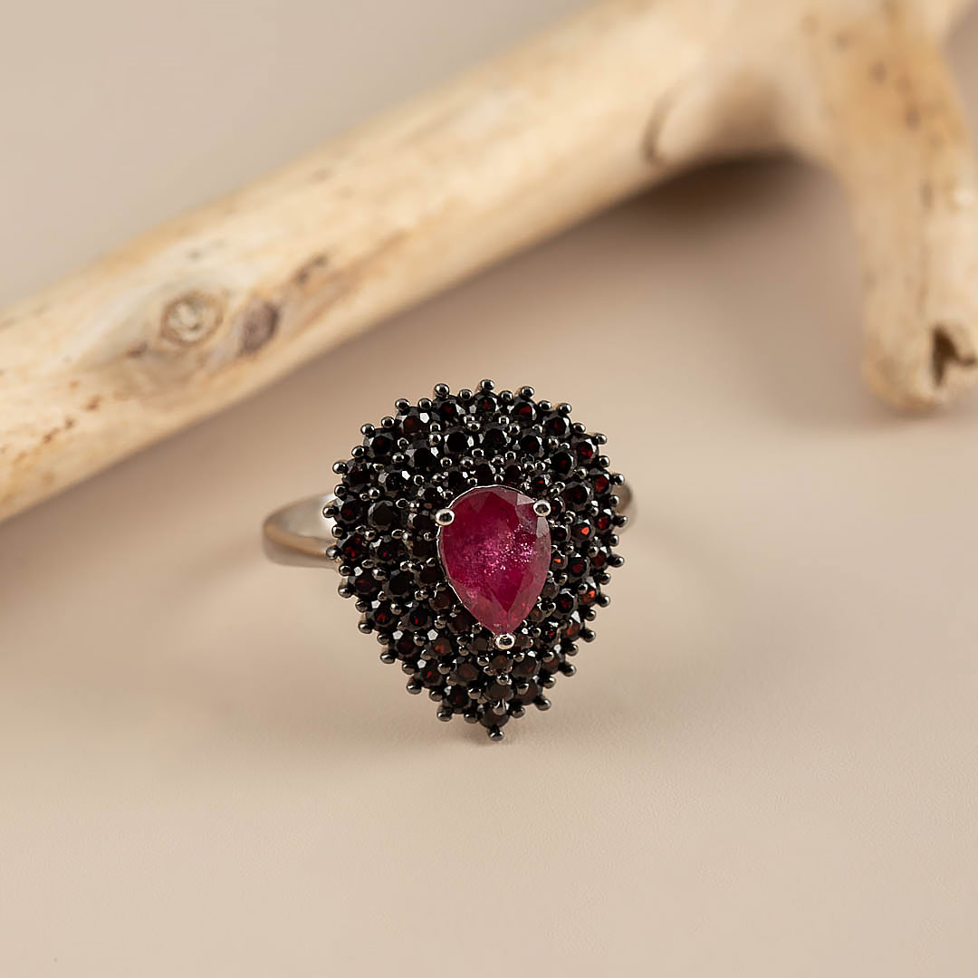 Кольцо из серебра с рубином, гранатом