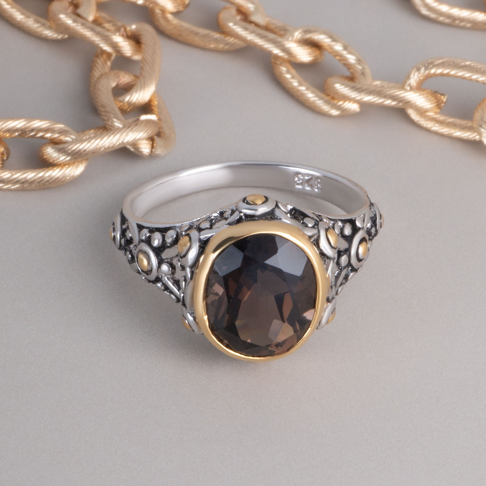 Кольцо из серебра с раухтопазом (дымчатый кварц)