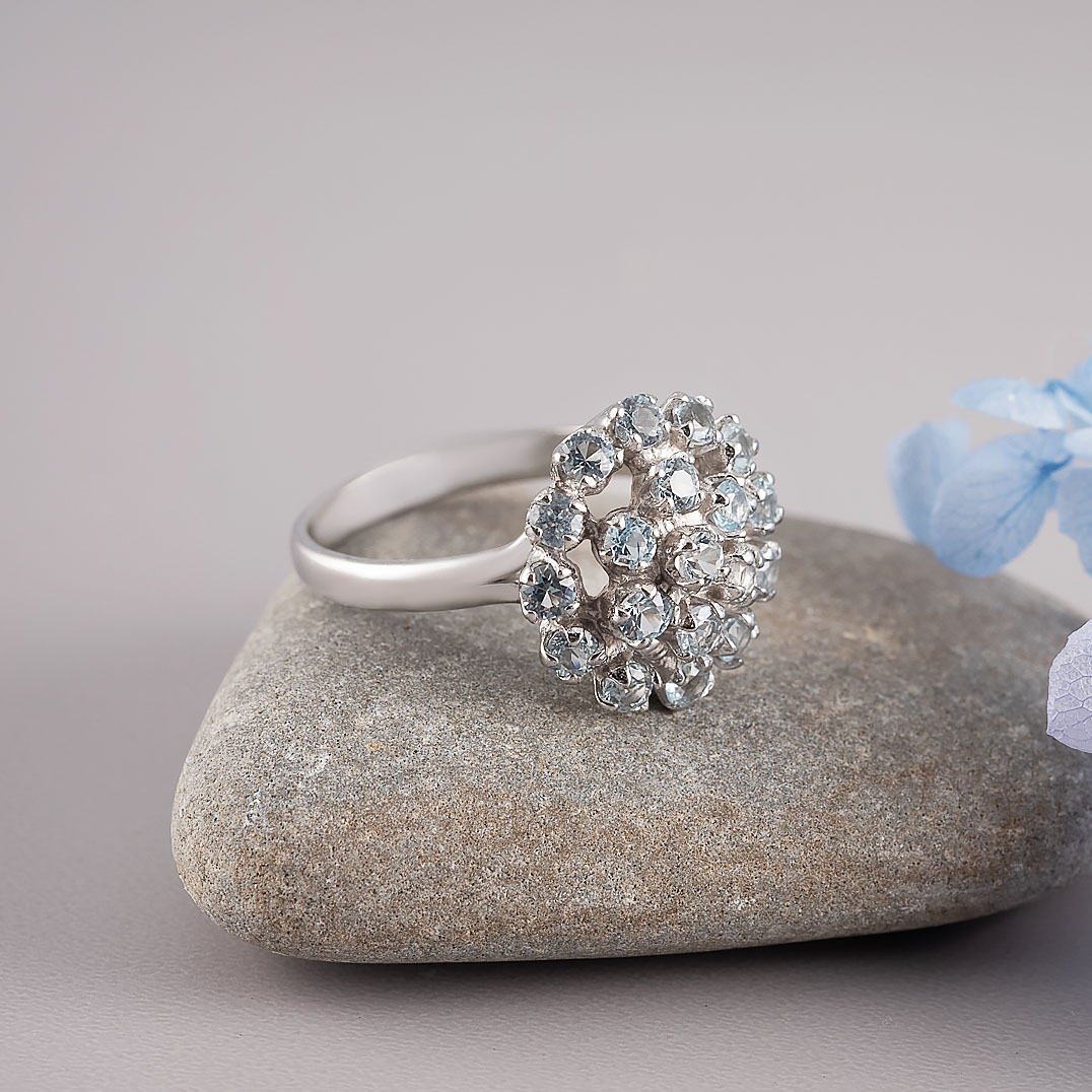 Топаз - один из самых популярных драгоценных камней в ювелирном искусстве. По твердости он уступает только алмазу и корунду. Прозрачность и бриллиантовый блеск граней делают его удивительно привлекательным для коллекционеров. Название камень получил в честь острова Топазос в Красном море. Люди знали этот камень еще в древние времена. Так, Библия гласит, что топаз составлял часть украшения первосвященника Аарона. Королевские дворы Европы также выбирали этот камень для ювелирных коллекций. Известен, например, камень “Браганза“, входящий в число регалий португальской короны. Цветовая гамма этого драгоценного камня разнообразна: существуют розовые, желтые, голубые, фиолетовые, винные топазы. Голубые топазы принято разделять на три категории в зависимости от интенсивности окраски (обычно достигаемой за счет облучения): Sky Blue - небесно-голубые, Swiss Blue - швейцарские, с более насыщенным цветом, и London Blue - лондонские, с наиболее глубоким оттенком синевы.