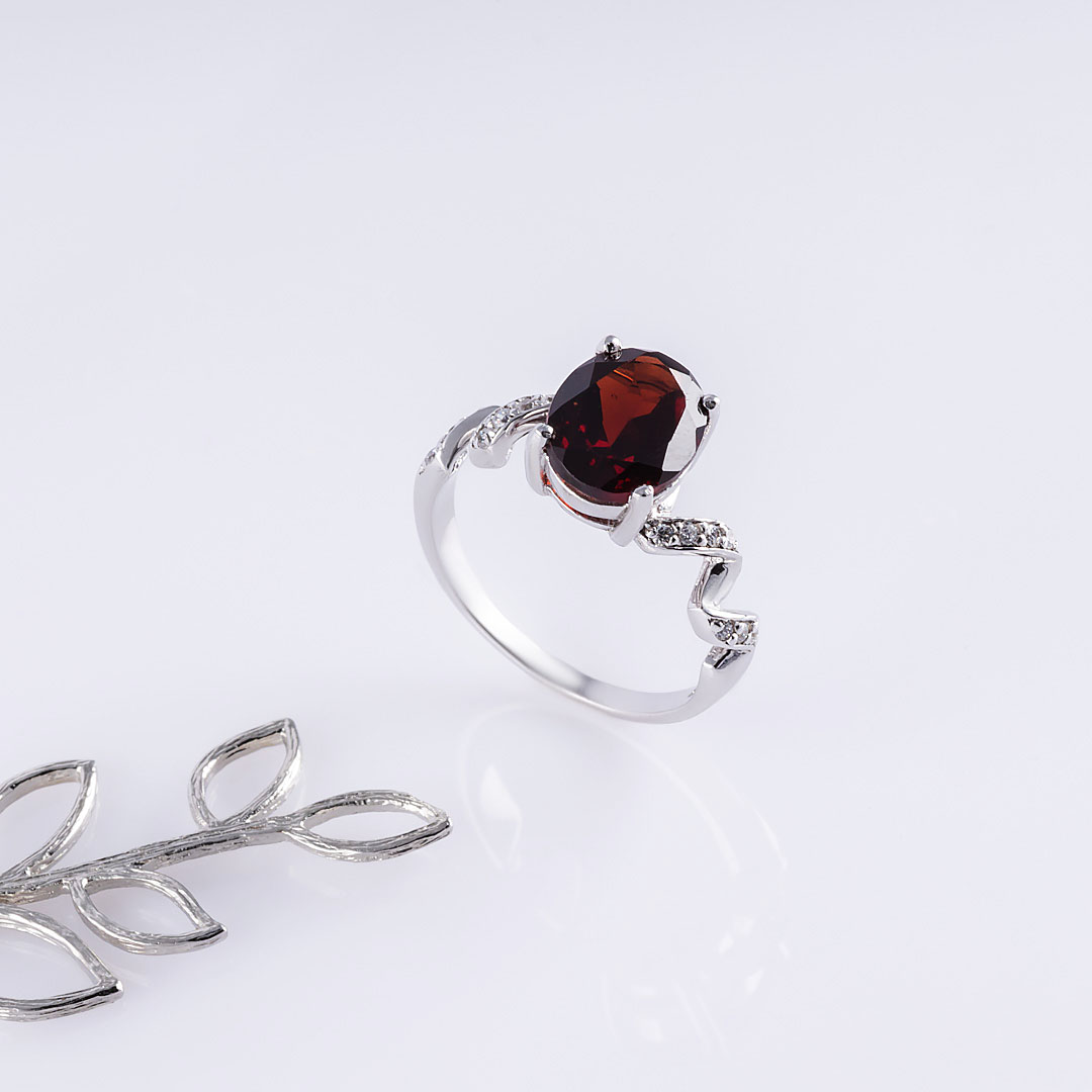Кольцо из серебра с гранатом, фианитом