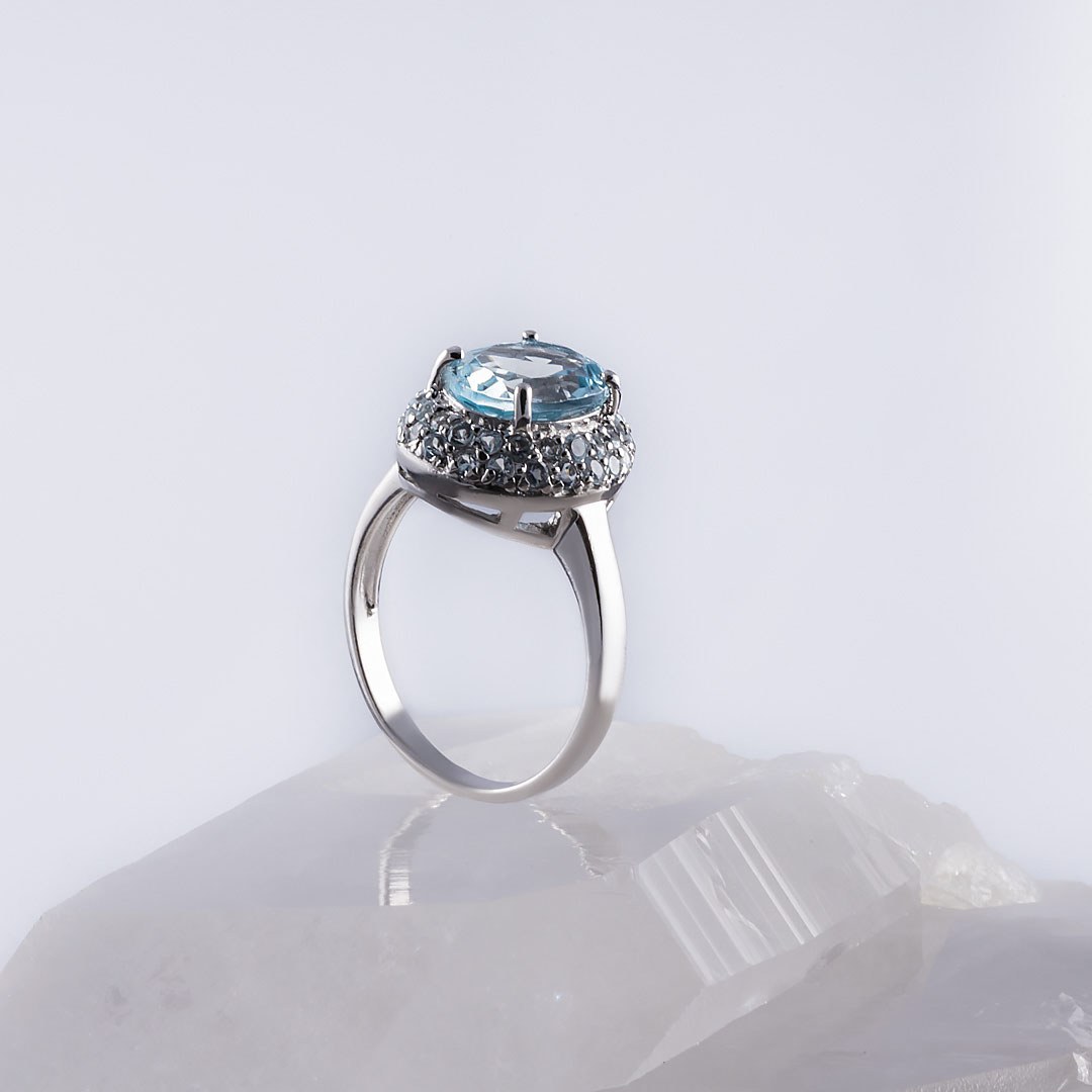 Топаз - один из самых популярных драгоценных камней в ювелирном искусстве. По твердости он уступает только алмазу и корунду. Прозрачность и бриллиантовый блеск граней делают его удивительно привлекательным для коллекционеров. Название камень получил в честь острова Топазос в Красном море. Люди знали этот камень еще в древние времена. Так, Библия гласит, что топаз составлял часть украшения первосвященника Аарона. Королевские дворы Европы также выбирали этот камень для ювелирных коллекций. Известен, например, камень “Браганза“, входящий в число регалий португальской короны. Цветовая гамма этого драгоценного камня разнообразна: существуют розовые, желтые, голубые, фиолетовые, винные топазы. Голубые топазы принято разделять на три категории в зависимости от интенсивности окраски (обычно достигаемой за счет облучения): Sky Blue - небесно-голубые, Swiss Blue - швейцарские, с более насыщенным цветом, и London Blue - лондонские, с наиболее глубоким оттенком синевы.