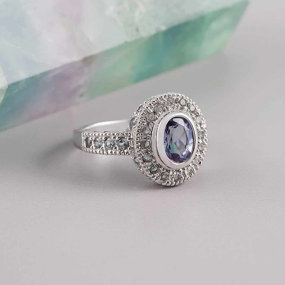 Кольцо из серебра с фианитом, александритом синт.