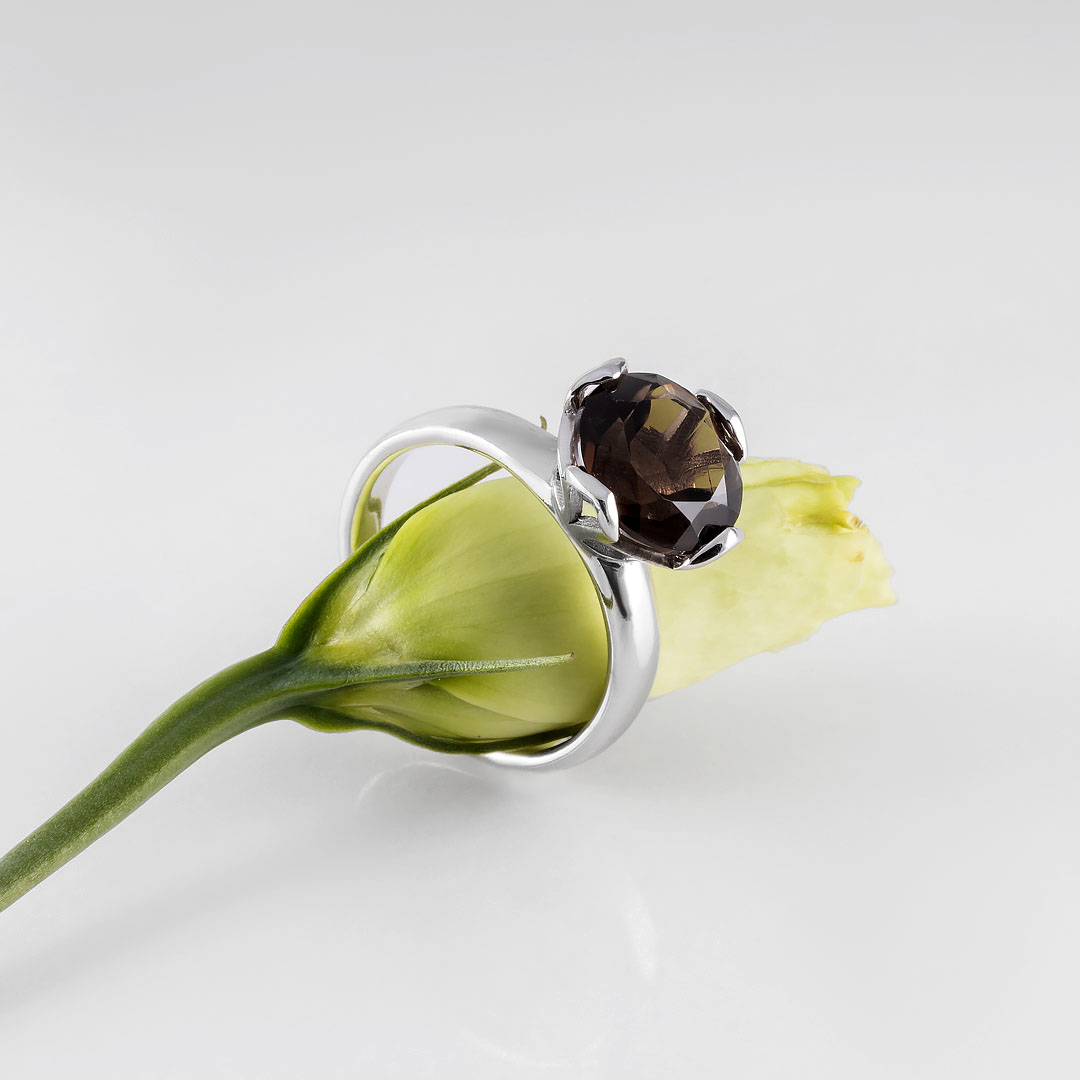 Кольцо из серебра с раухтопазом (дымчатый кварц)
