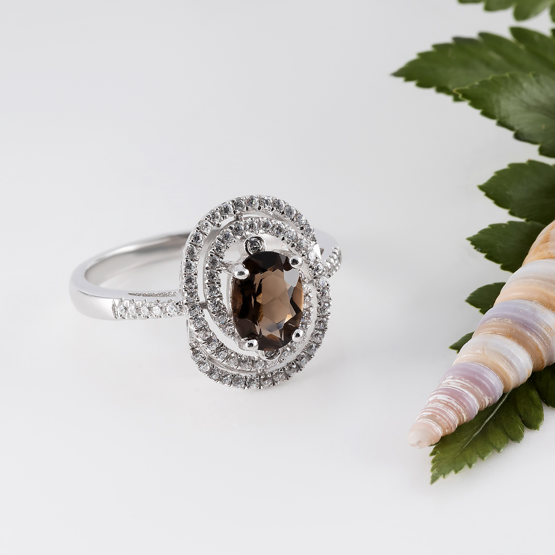 Кольцо из серебра с фианитом, раухтопазом (дымчатый кварц)
