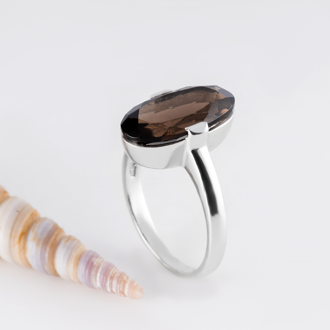 Кольцо из серебра с раухтопазом (дымчатый кварц)