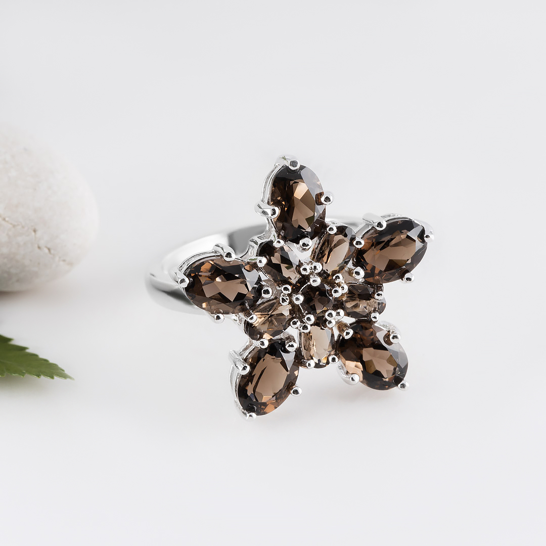 Кольцо из серебра с раухтопазом (дымчатый кварц)