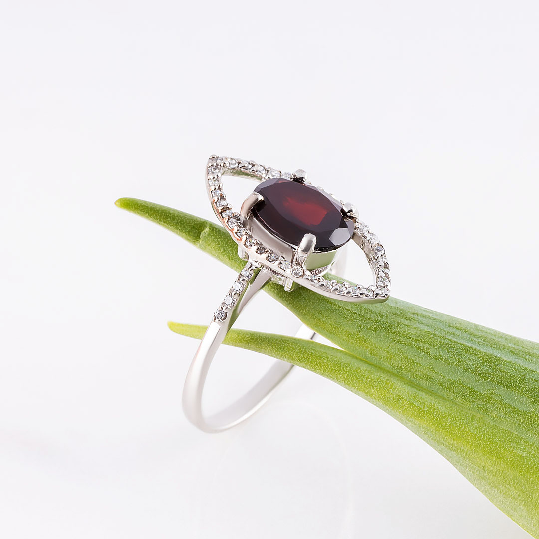Кольцо из серебра с гранатом, фианитом