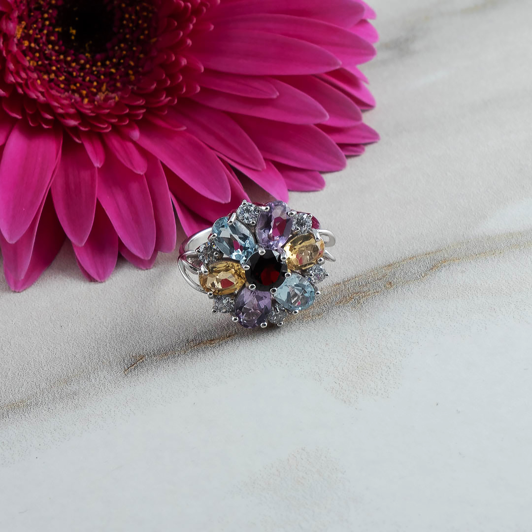 Кольцо из серебра с цитрином, топазом, аметистом, фианитом