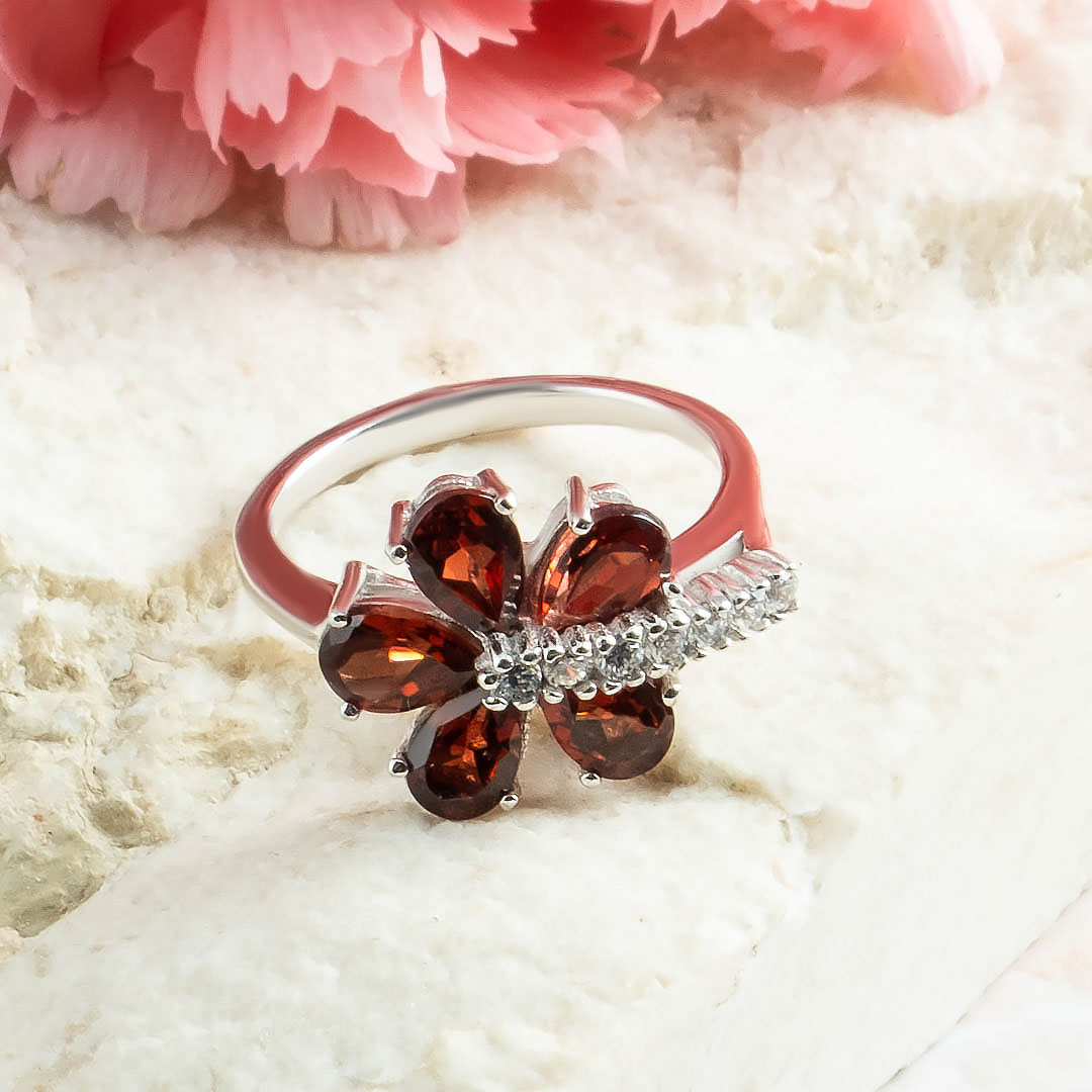 Кольцо из серебра с гранатом, фианитом