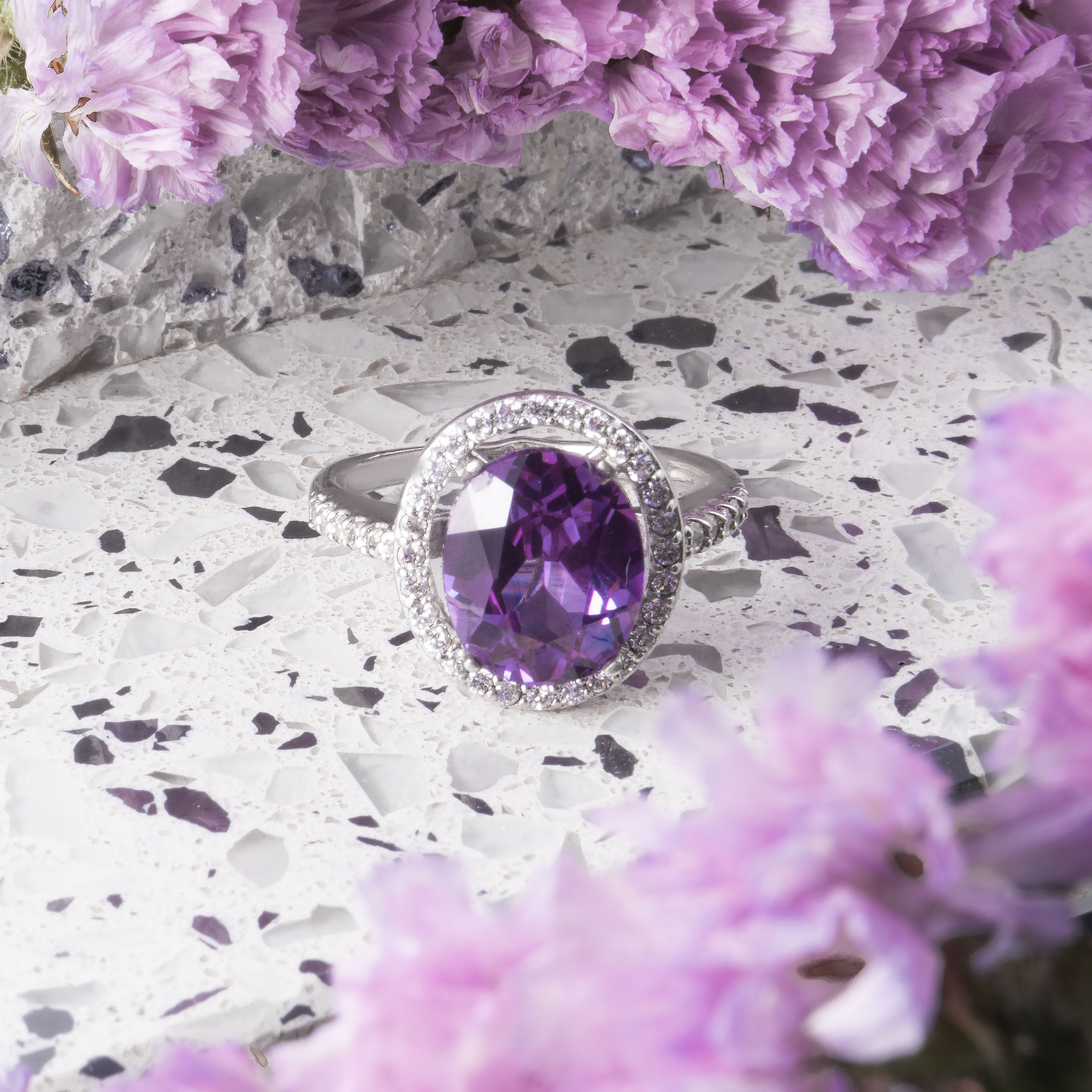 Кольцо из серебра с фианитом, александритом синт.