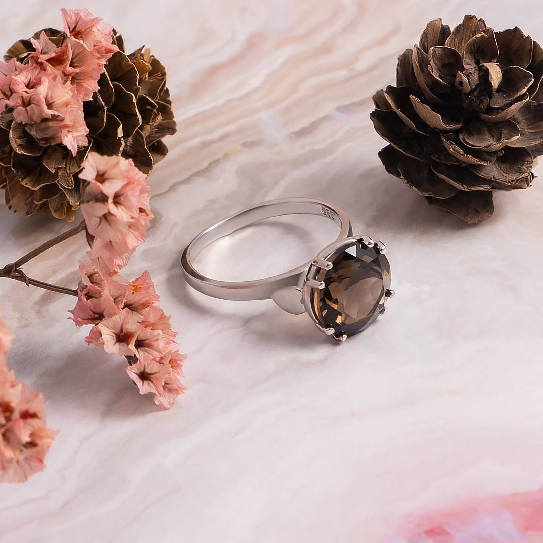 Кольцо из серебра с раухтопазом (дымчатый кварц)